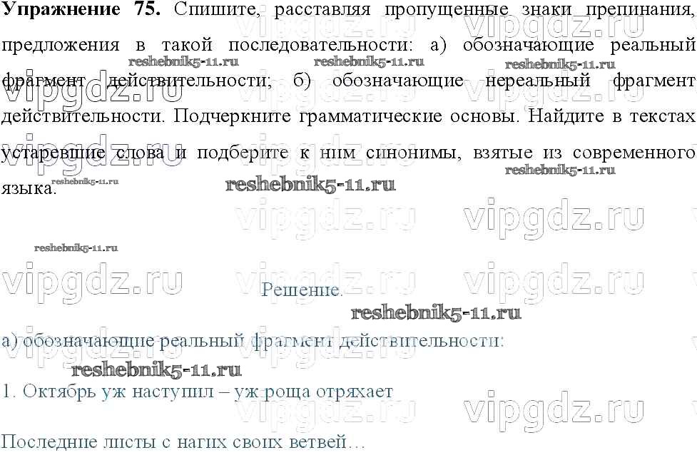 Русский язык за 8 класс Тростенцова Учебник Просвещение упражнение № 75