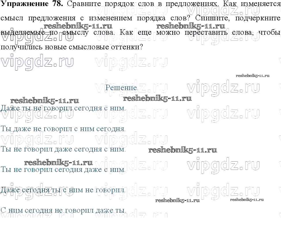 Готовая домашняя работа с ответами по Русскому языку за 8 класс Тростенцова, Ладыженская, Дейкина, Александрова Учебник Просвещение 2014 ФГОС - Упражнения 78