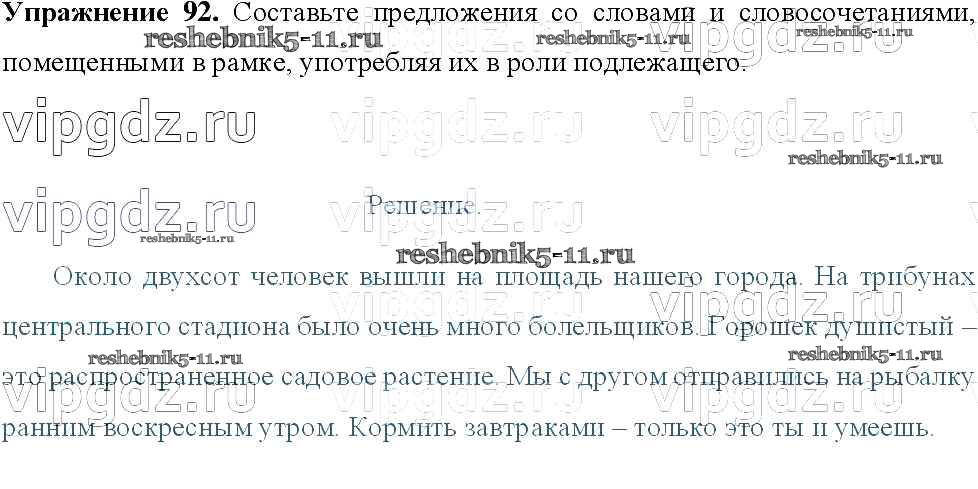 Готовая домашняя работа с ответами по Русскому языку за 8 класс Тростенцова, Ладыженская, Дейкина, Александрова Учебник Просвещение 2014 ФГОС - Упражнения 92