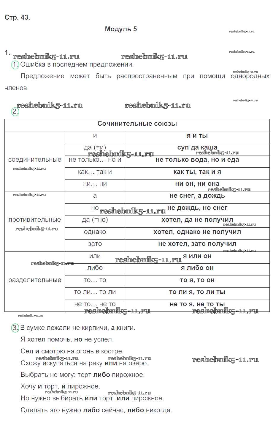 Готовая домашняя работа с ответами по Русскому языку за 8 класс Ерохина Рабочая тетрадь УМК Экзамен 2014 ФГОС - Страницы 43