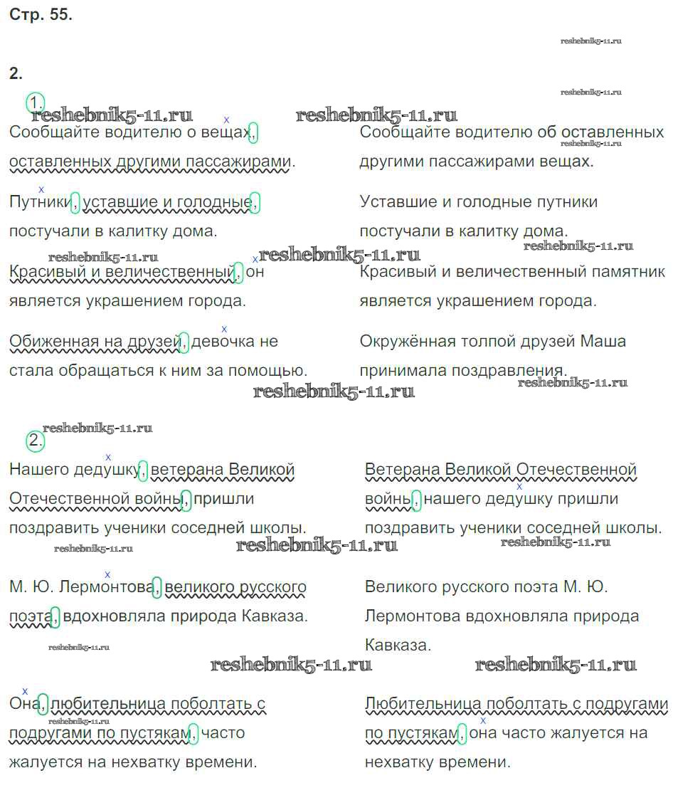 Готовая домашняя работа с ответами по Русскому языку за 8 класс Ерохина Рабочая тетрадь УМК Экзамен 2014 ФГОС - Страницы 55