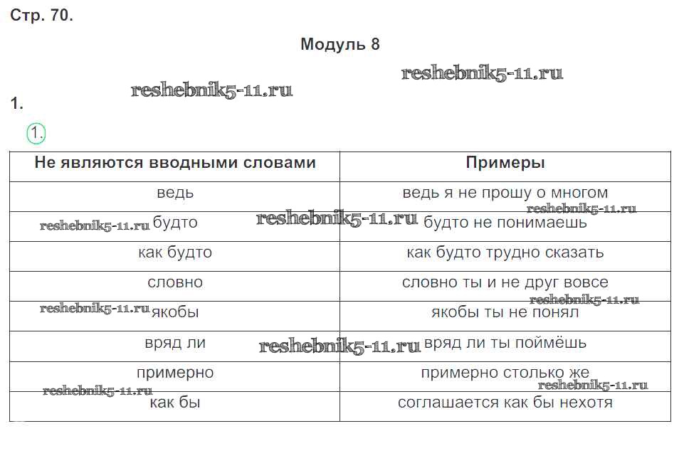 Готовая домашняя работа с ответами по Русскому языку за 8 класс Ерохина Рабочая тетрадь УМК Экзамен 2014 ФГОС - Страницы 70