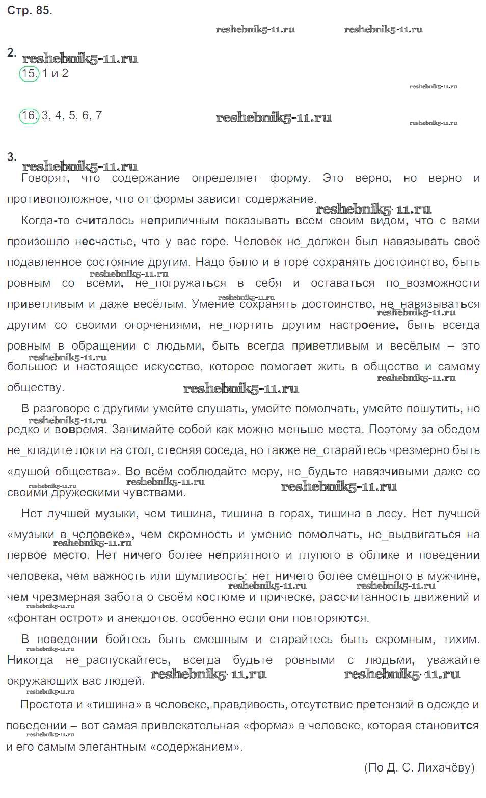 Готовая домашняя работа с ответами по Русскому языку за 8 класс Ерохина Рабочая тетрадь УМК Экзамен 2014 ФГОС - Страницы 85