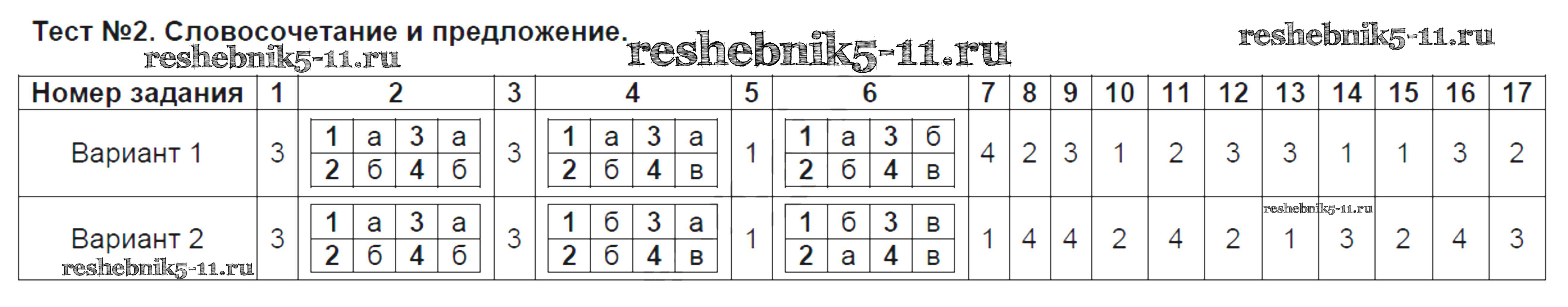 Готовая домашняя работа с ответами по Русскому языку за 8 класс Клевцова, Шубукина Тематические тесты УМК Просвещение 2018 ФГОС - Тесты Тест №2. Словосочетание и предложение