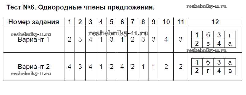 Готовая домашняя работа с ответами по Русскому языку за 8 класс Клевцова, Шубукина Тематические тесты УМК Просвещение 2018 ФГОС - Тесты Тест №6. Однородные члены предложения