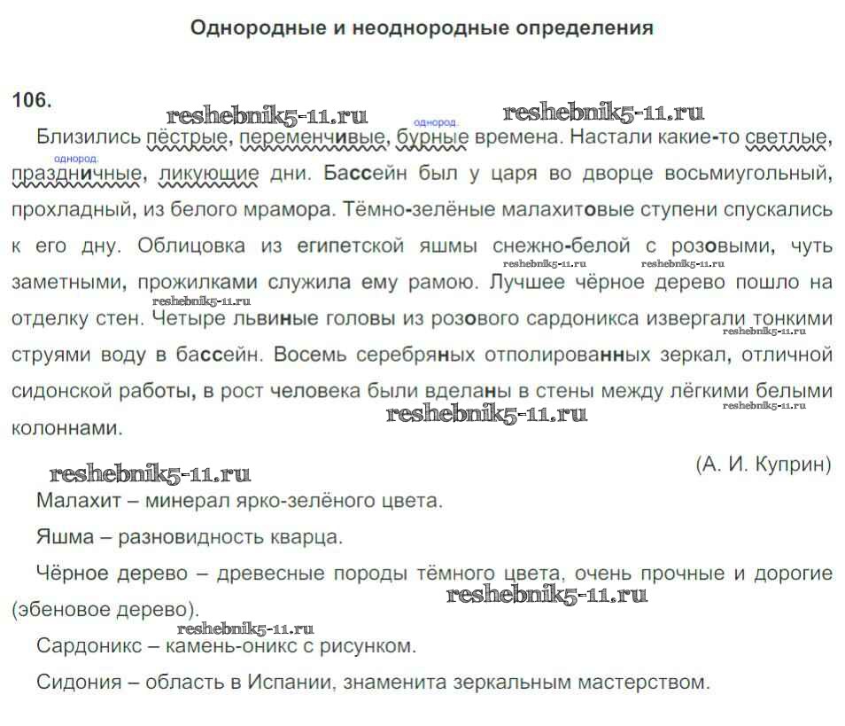 Готовая домашняя работа с ответами по Русскому языку за 8 класс Кулаева Рабочая тетрадь УМК Экзамен 2015 ФГОС - Упражнения 106