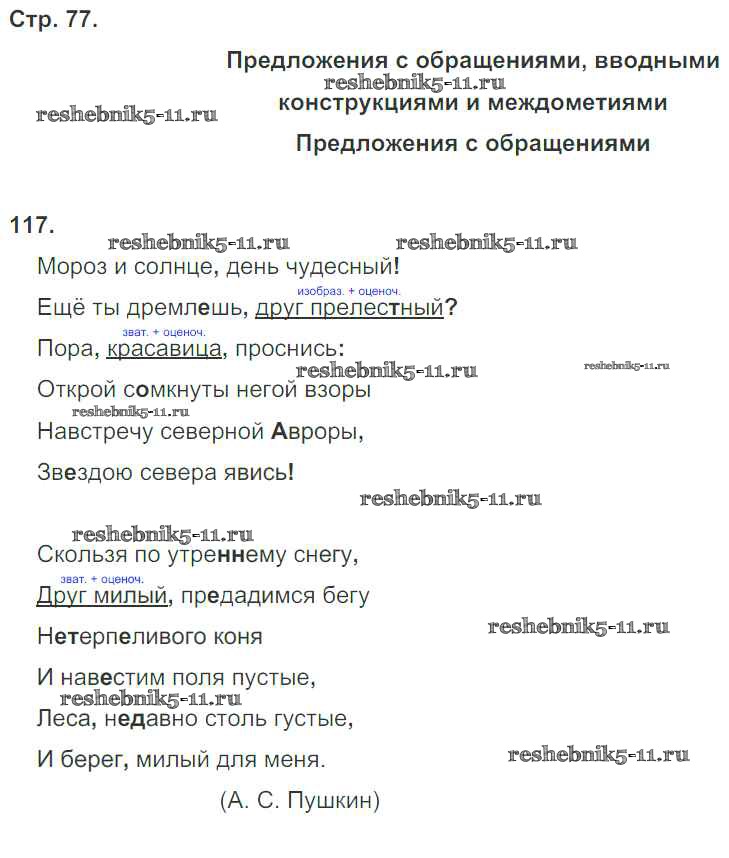 Готовая домашняя работа с ответами по Русскому языку за 8 класс Кулаева Рабочая тетрадь УМК Экзамен 2015 ФГОС - Упражнения 117