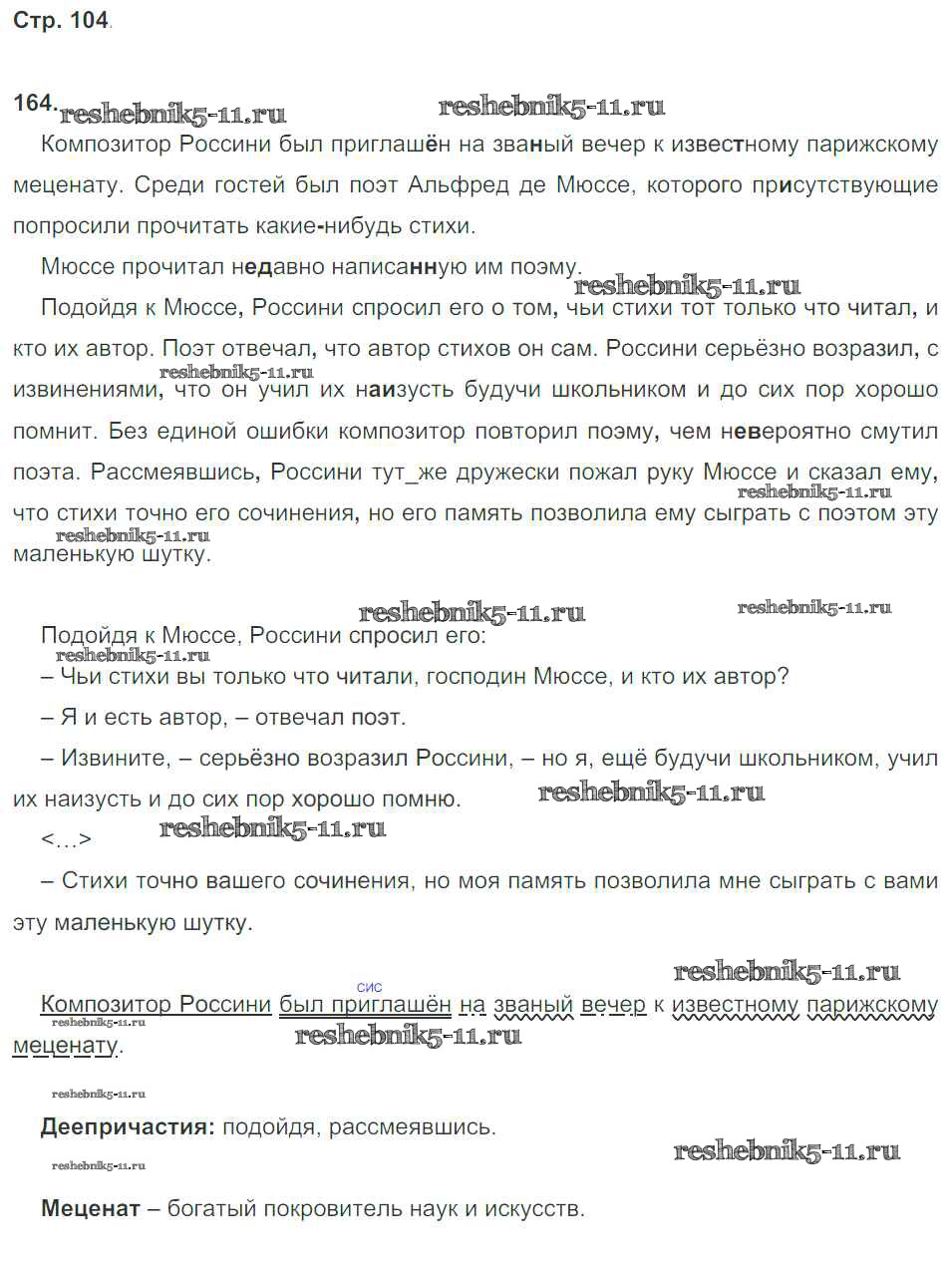 Готовая домашняя работа с ответами по Русскому языку за 8 класс Кулаева Рабочая тетрадь УМК Экзамен 2015 ФГОС - Упражнения 164