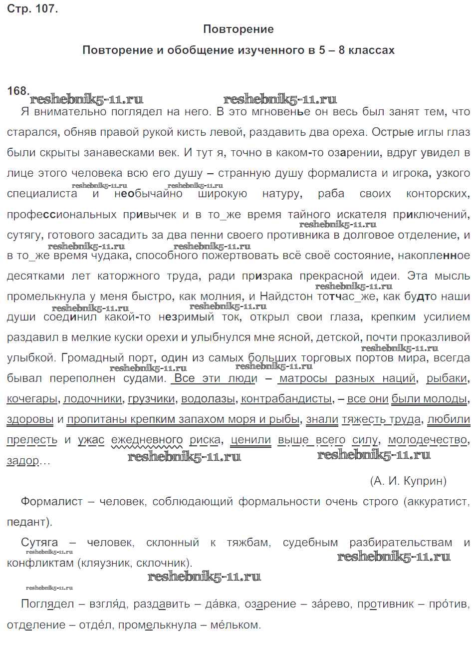 Готовая домашняя работа с ответами по Русскому языку за 8 класс Кулаева Рабочая тетрадь УМК Экзамен 2015 ФГОС - Упражнения 168