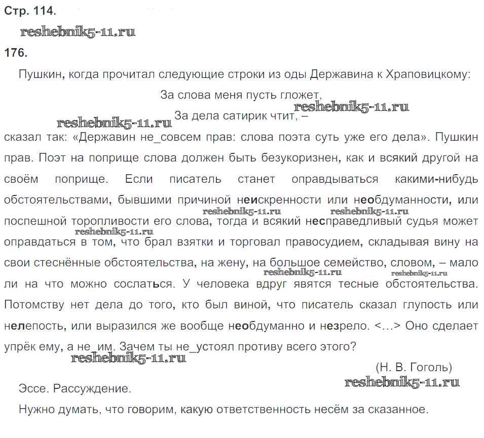 Готовая домашняя работа с ответами по Русскому языку за 8 класс Кулаева Рабочая тетрадь УМК Экзамен 2015 ФГОС - Упражнения 176