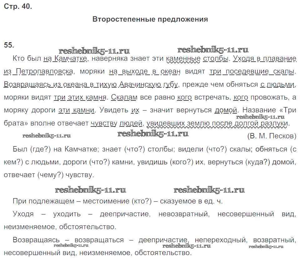 Готовая домашняя работа с ответами по Русскому языку за 8 класс Кулаева Рабочая тетрадь УМК Экзамен 2015 ФГОС - Упражнения 55