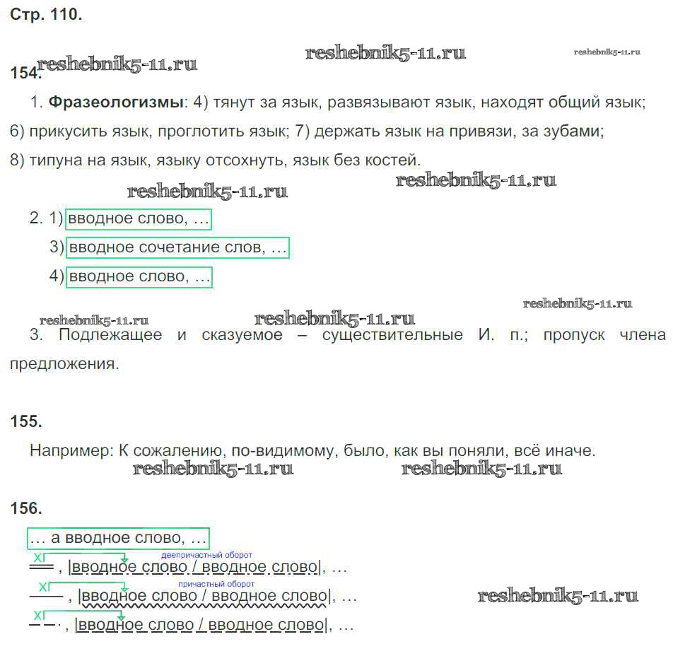 Готовая домашняя работа с ответами по Русскому языку за 8 класс Литвинова Рабочая тетрадь Вертикаль Дрофа 2017 ФГОС - Страницы 110