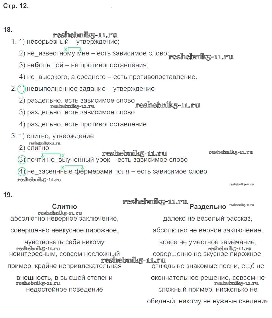 Готовая домашняя работа с ответами по Русскому языку за 8 класс Литвинова Рабочая тетрадь Вертикаль Дрофа 2017 ФГОС - Страницы 12
