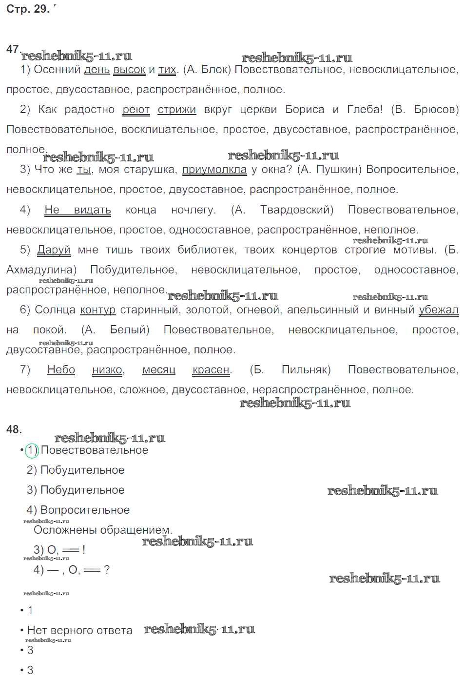 Готовая домашняя работа с ответами по Русскому языку за 8 класс Литвинова Рабочая тетрадь Вертикаль Дрофа 2017 ФГОС - Страницы 29