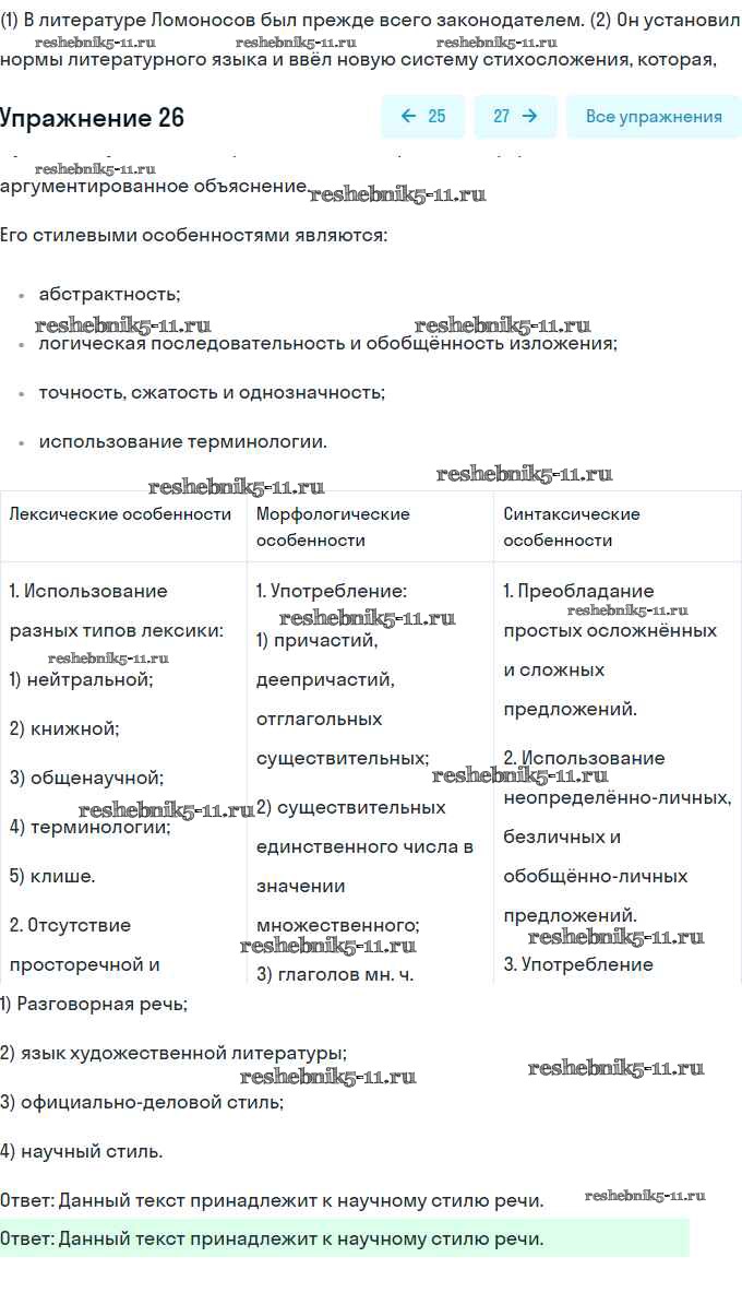 Готовая домашняя работа с ответами по Русскому языку за 8 класс Нарушевич, Голубева Тесты, творческие работы, проекты Просвещение 2020 ФГОС - Вариант 1 26