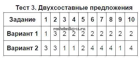 Готовая домашняя работа с ответами по Русскому языку за 8 класс Селезнева Тесты УМК Экзамен 2014 ФГОС - Тесты Тест №3. Двухсоставные предложения