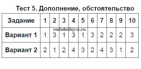 Готовая домашняя работа с ответами по Русскому языку за 8 класс Селезнева Тесты УМК Экзамен 2014 ФГОС - Тесты Тест №5. Дополнение, обстоятельство