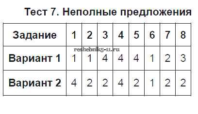 Готовая домашняя работа с ответами по Русскому языку за 8 класс Селезнева Тесты УМК Экзамен 2014 ФГОС - Тесты Тест №7. Неполные предложения