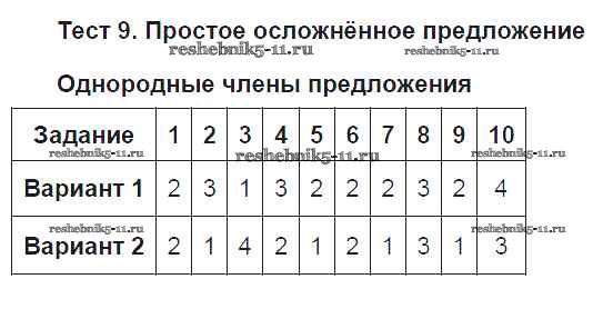 Готовая домашняя работа с ответами по Русскому языку за 8 класс Селезнева Тесты УМК Экзамен 2014 ФГОС - Тесты Тест №9. Однородные члены предложения