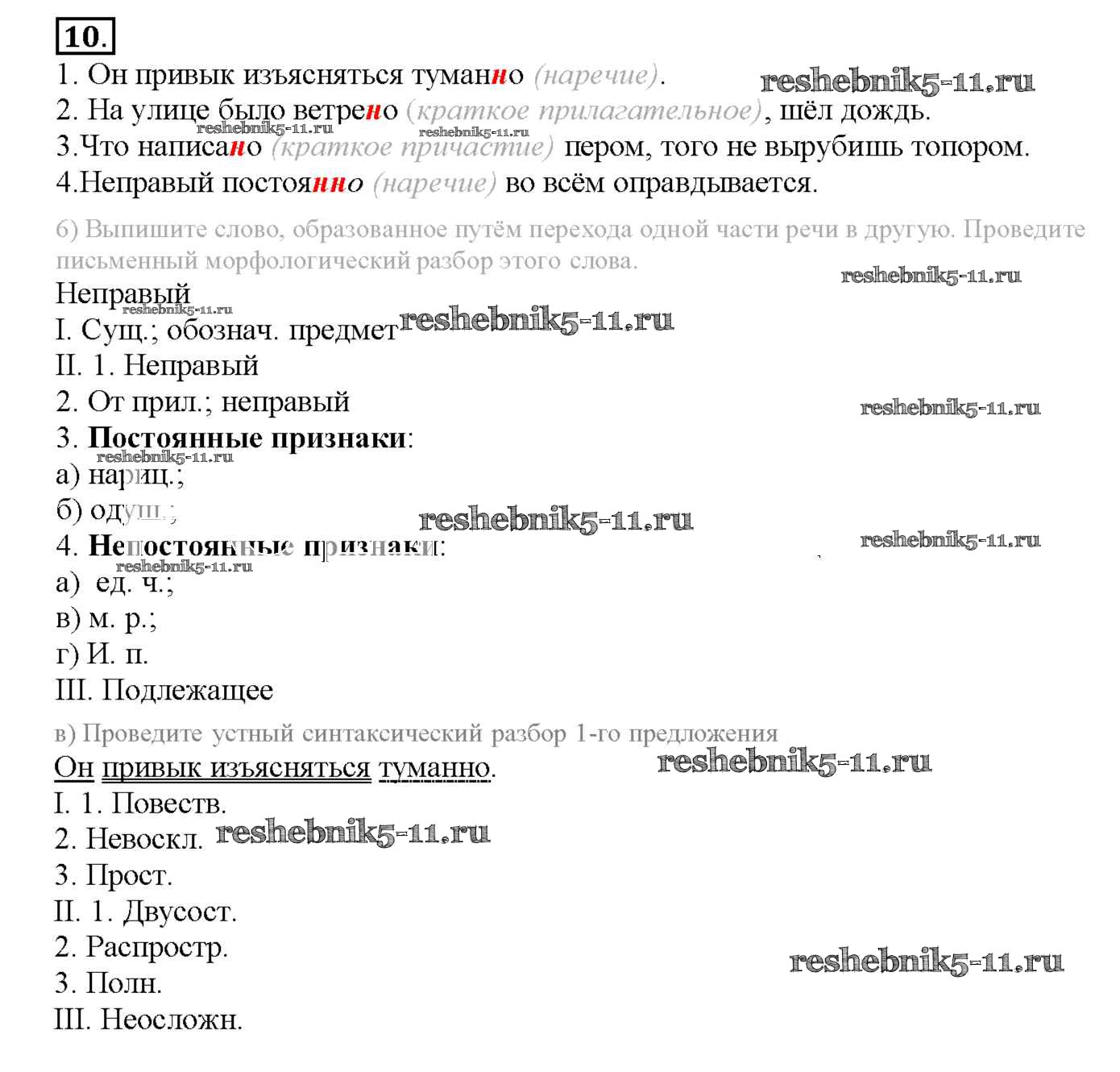 Готовая домашняя работа с ответами по Русскому языку за 8 класс Львов Рабочая тетрадь УМК Экзамен 2016 ФГОС - Упражнения 10
