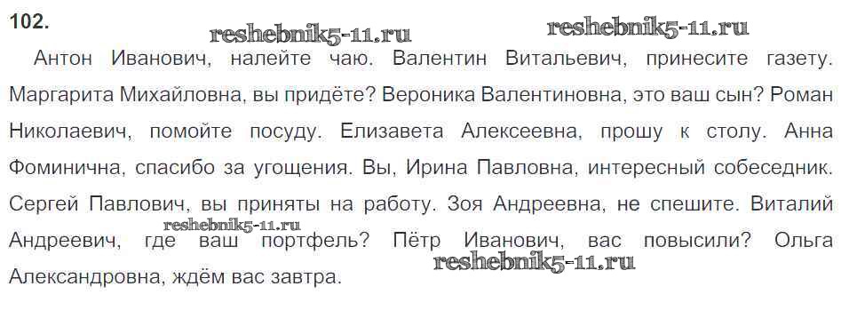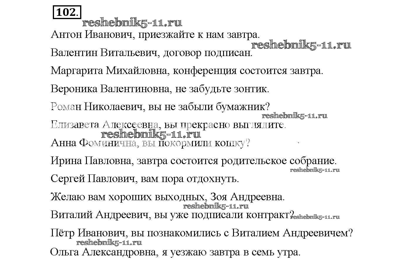 Готовая домашняя работа с ответами по Русскому языку за 8 класс Львов Рабочая тетрадь УМК Экзамен 2016 ФГОС - Упражнения 102