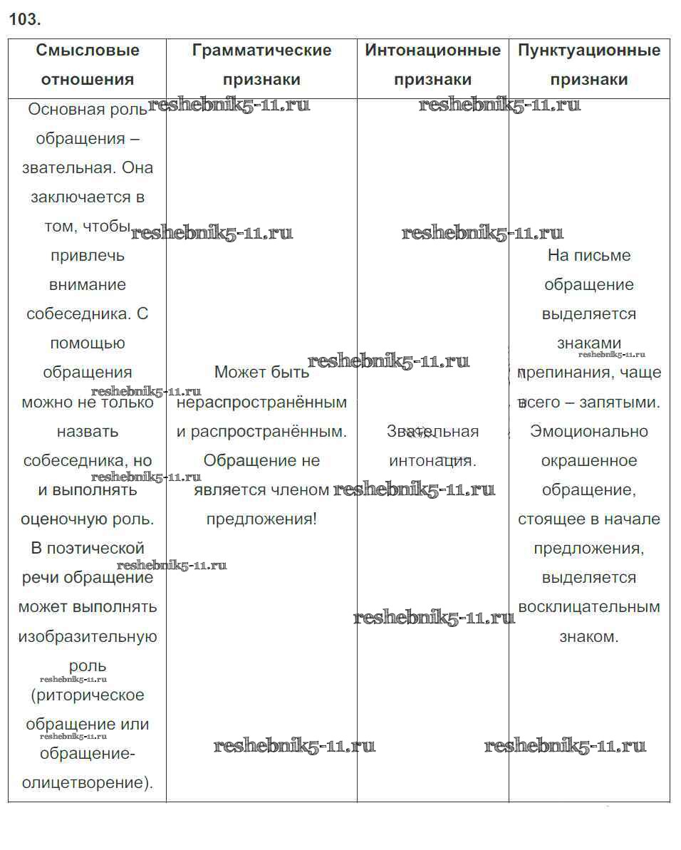 Готовая домашняя работа с ответами по Русскому языку за 8 класс Львов Рабочая тетрадь УМК Экзамен 2016 ФГОС - Упражнения 103
