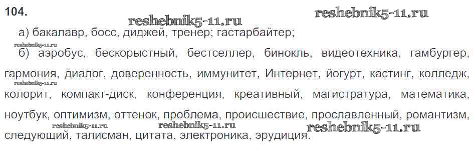Готовая домашняя работа с ответами по Русскому языку за 8 класс Львов Рабочая тетрадь УМК Экзамен 2016 ФГОС - Упражнения 104