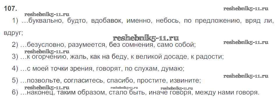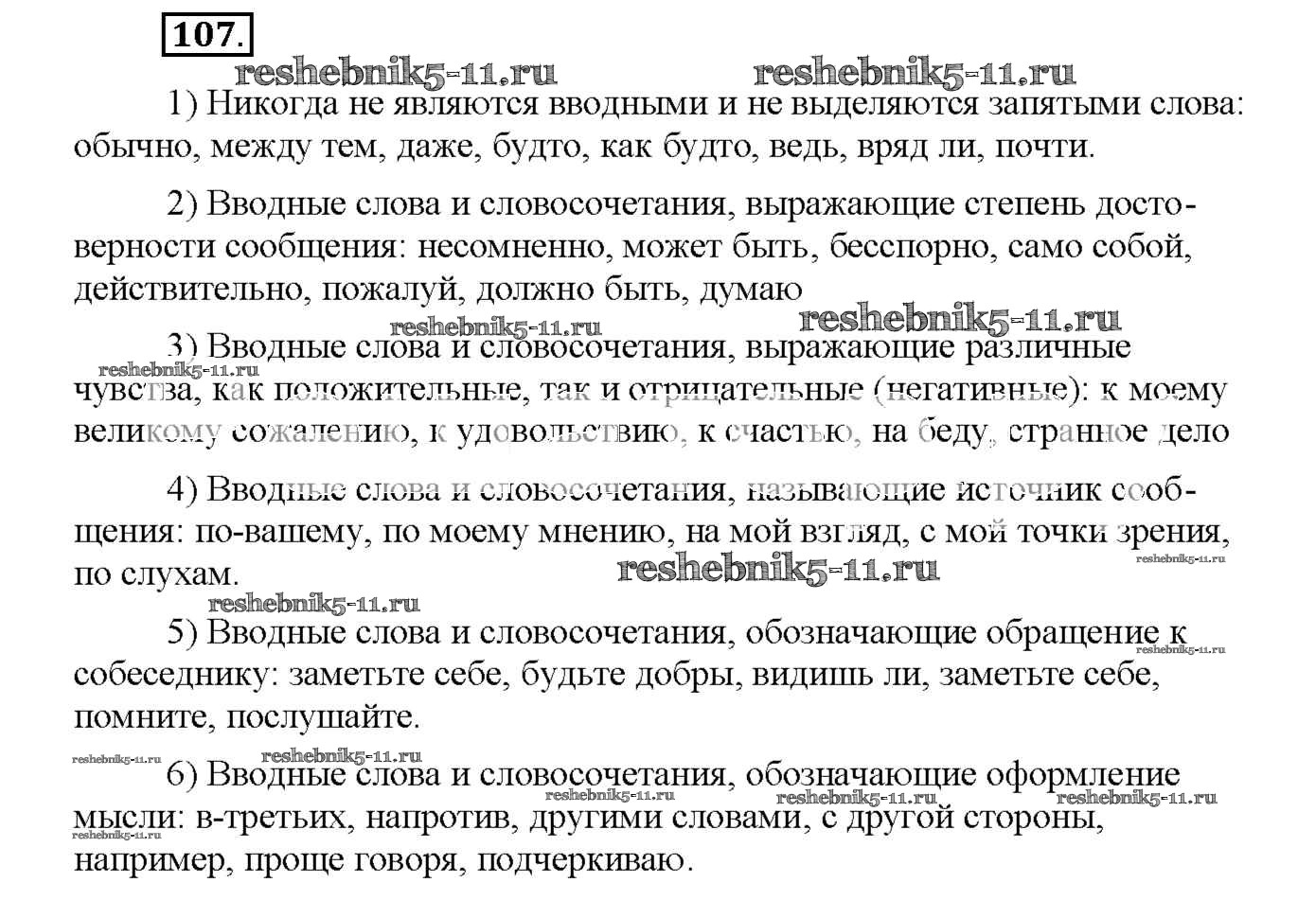 Готовая домашняя работа с ответами по Русскому языку за 8 класс Львов Рабочая тетрадь УМК Экзамен 2016 ФГОС - Упражнения 107