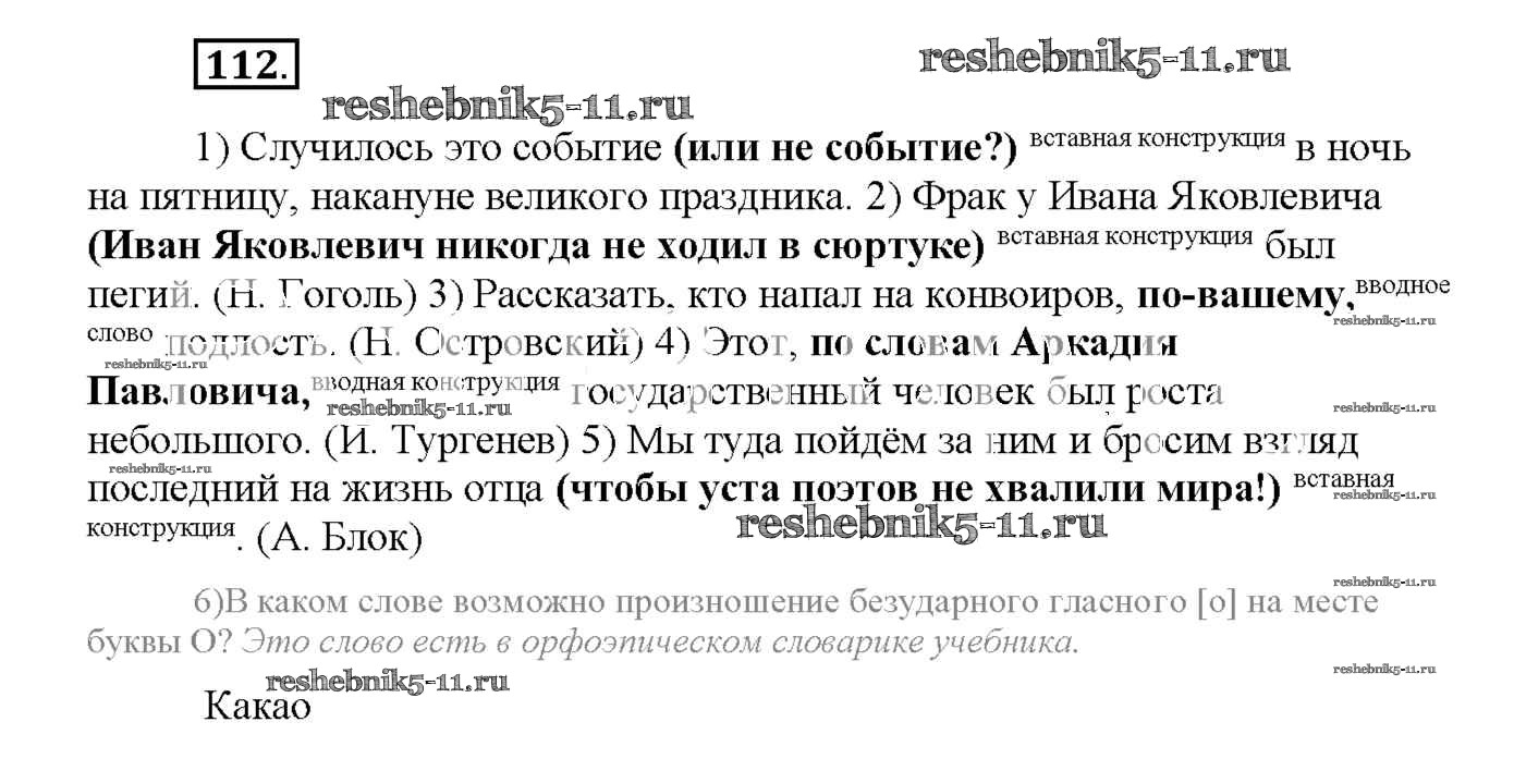 Готовая домашняя работа с ответами по Русскому языку за 8 класс Львов Рабочая тетрадь УМК Экзамен 2016 ФГОС - Упражнения 112