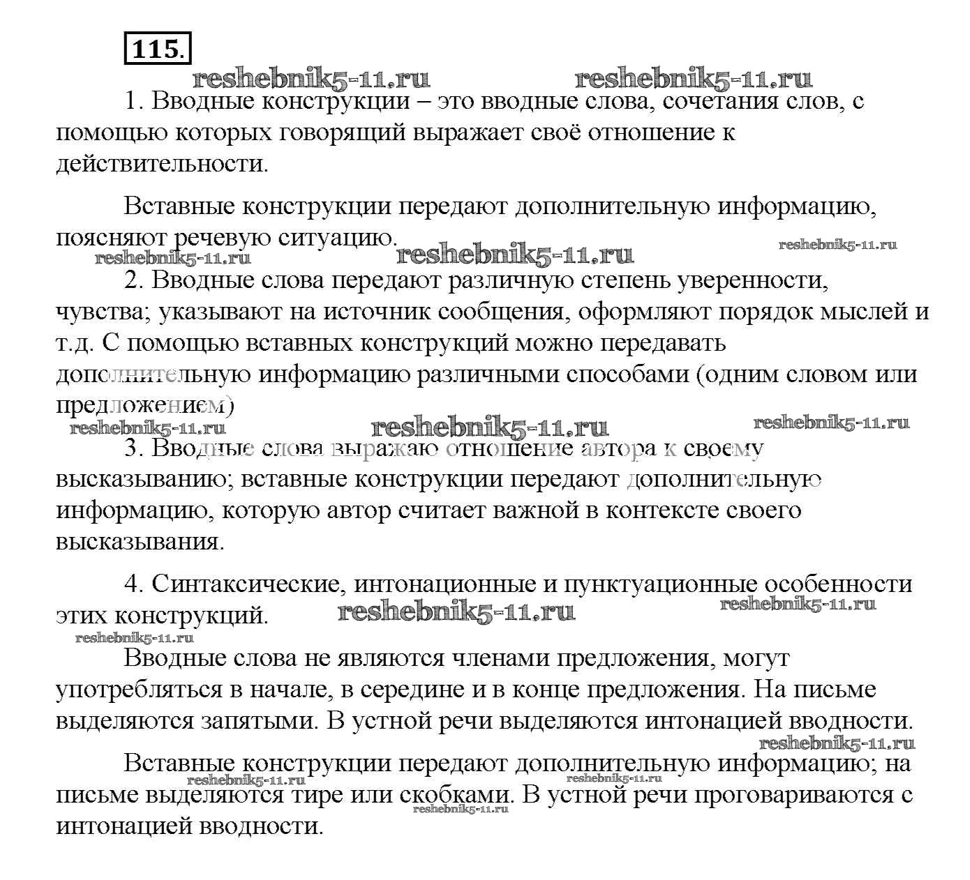 Готовая домашняя работа с ответами по Русскому языку за 8 класс Львов Рабочая тетрадь УМК Экзамен 2016 ФГОС - Упражнения 115