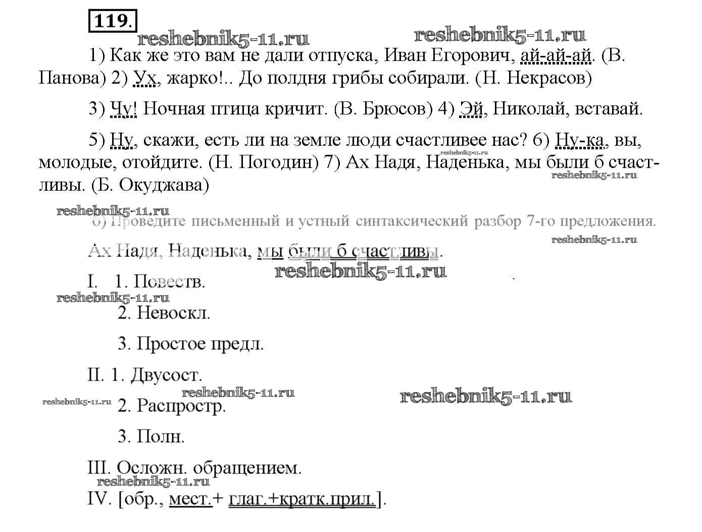 Готовая домашняя работа с ответами по Русскому языку за 8 класс Львов Рабочая тетрадь УМК Экзамен 2016 ФГОС - Упражнения 119