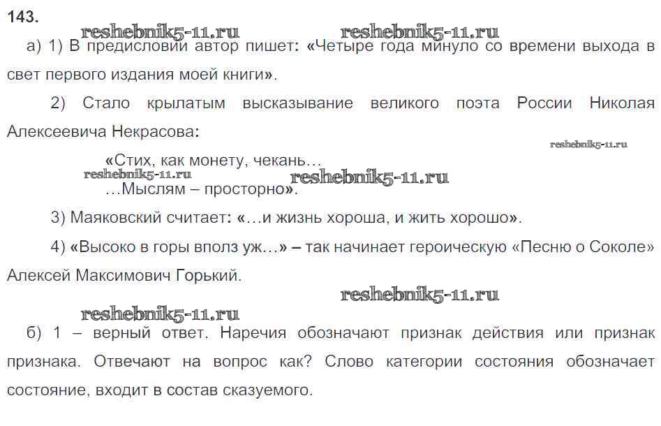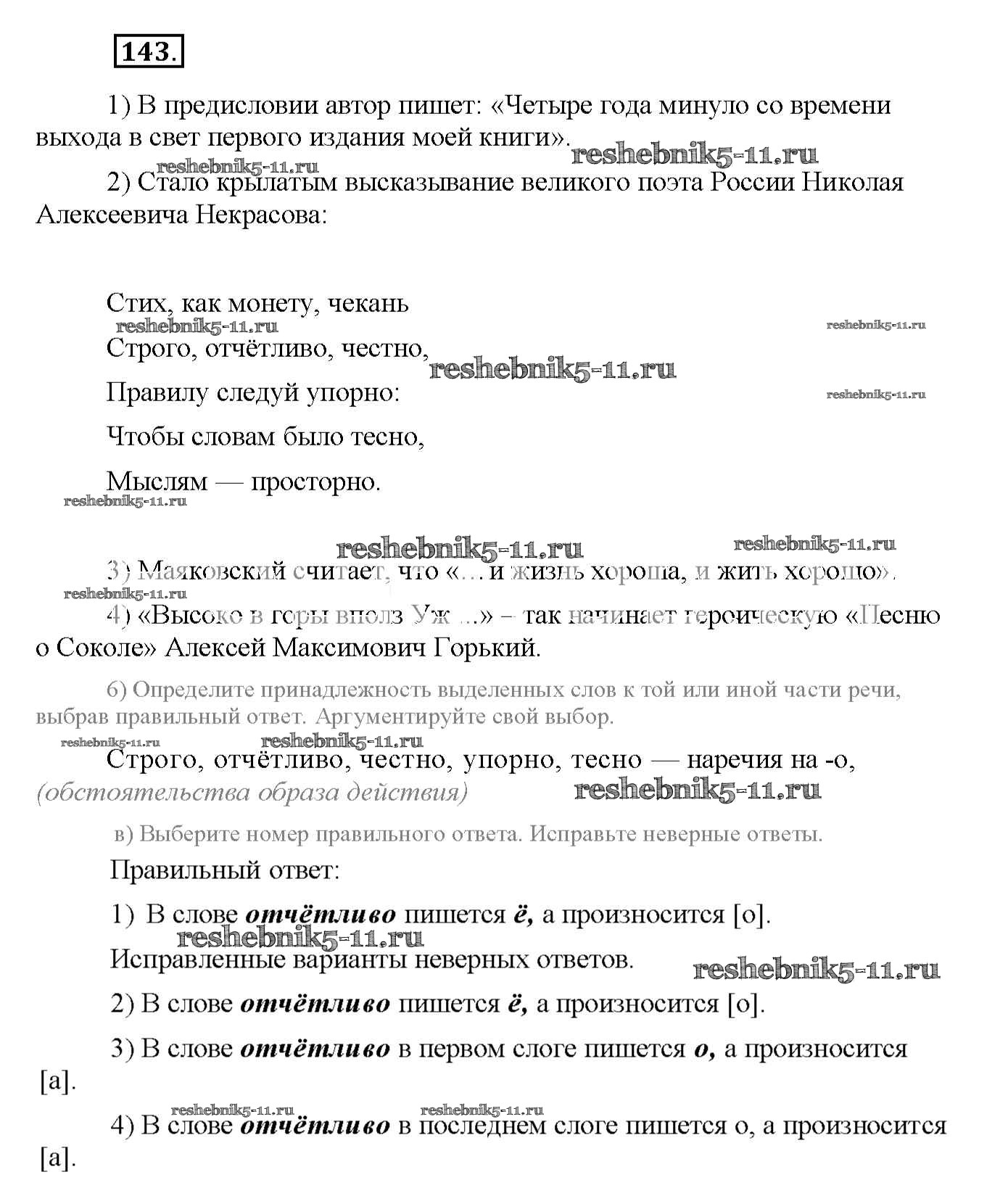 Готовая домашняя работа с ответами по Русскому языку за 8 класс Львов Рабочая тетрадь УМК Экзамен 2016 ФГОС - Упражнения 143