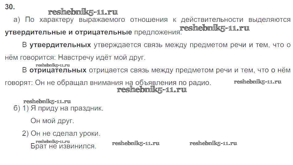 Готовая домашняя работа с ответами по Русскому языку за 8 класс Львов Рабочая тетрадь УМК Экзамен 2016 ФГОС - Упражнения 30