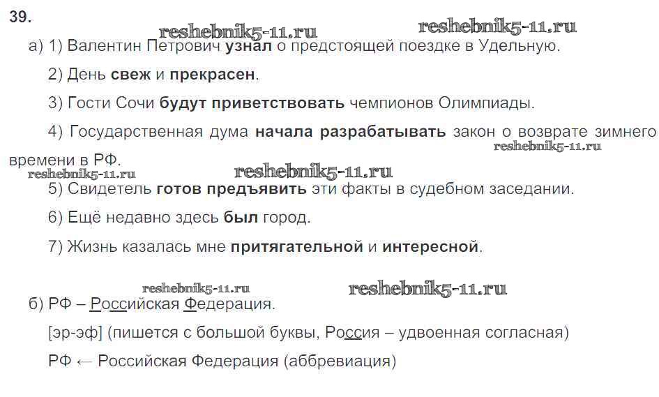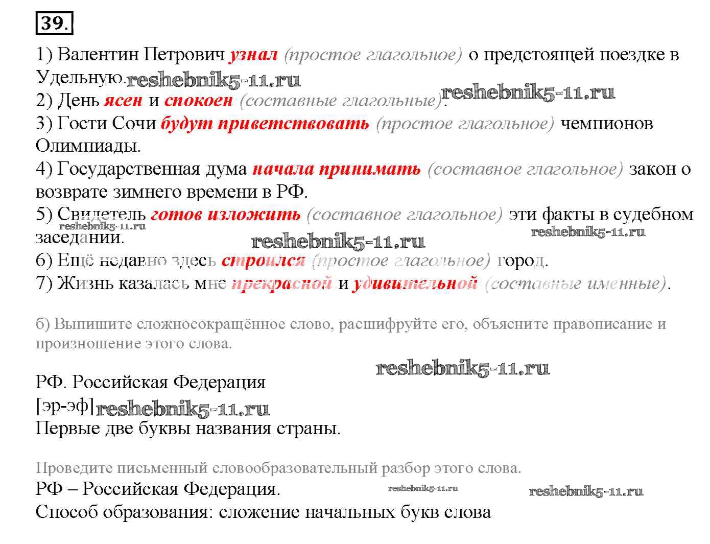 Готовая домашняя работа с ответами по Русскому языку за 8 класс Львов Рабочая тетрадь УМК Экзамен 2016 ФГОС - Упражнения 39