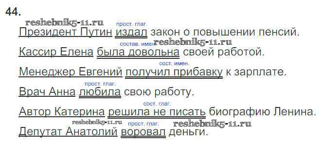 Готовая домашняя работа с ответами по Русскому языку за 8 класс Львов Рабочая тетрадь УМК Экзамен 2016 ФГОС - Упражнения 44
