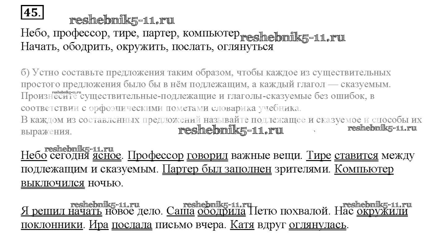 Готовая домашняя работа с ответами по Русскому языку за 8 класс Львов Рабочая тетрадь УМК Экзамен 2016 ФГОС - Упражнения 45