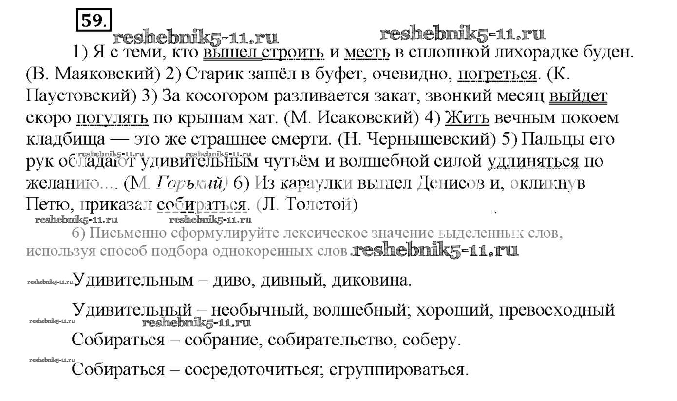 Готовая домашняя работа с ответами по Русскому языку за 8 класс Львов Рабочая тетрадь УМК Экзамен 2016 ФГОС - Упражнения 59