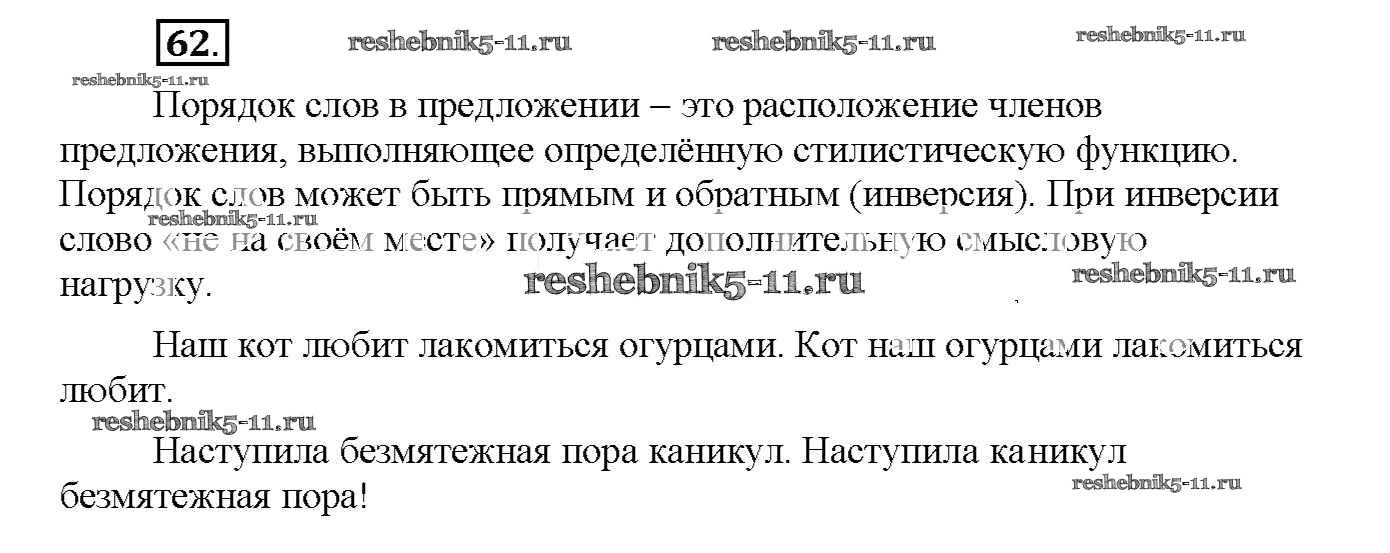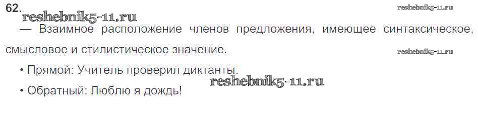 Готовая домашняя работа с ответами по Русскому языку за 8 класс Львов Рабочая тетрадь УМК Экзамен 2016 ФГОС - Упражнения 62