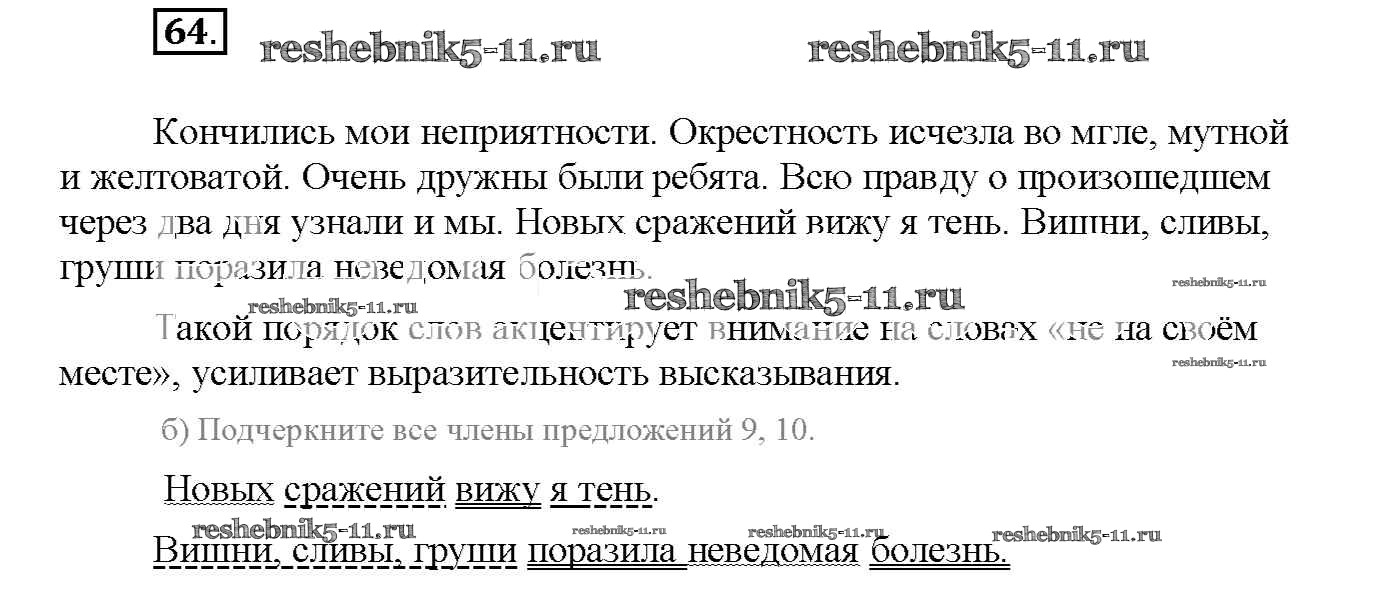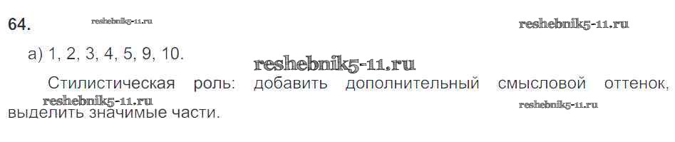 Готовая домашняя работа с ответами по Русскому языку за 8 класс Львов Рабочая тетрадь УМК Экзамен 2016 ФГОС - Упражнения 64