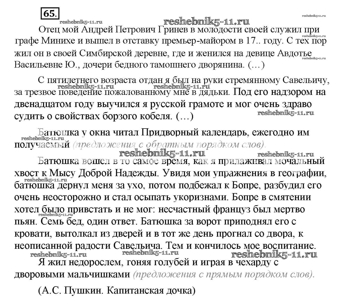 Готовая домашняя работа с ответами по Русскому языку за 8 класс Львов Рабочая тетрадь УМК Экзамен 2016 ФГОС - Упражнения 65