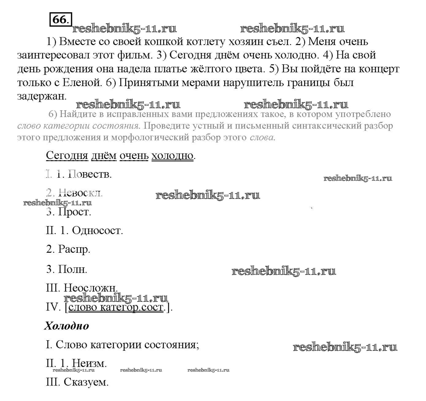 Готовая домашняя работа с ответами по Русскому языку за 8 класс Львов Рабочая тетрадь УМК Экзамен 2016 ФГОС - Упражнения 66
