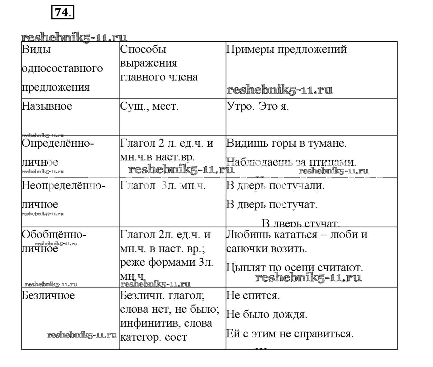 Готовая домашняя работа с ответами по Русскому языку за 8 класс Львов Рабочая тетрадь УМК Экзамен 2016 ФГОС - Упражнения 74