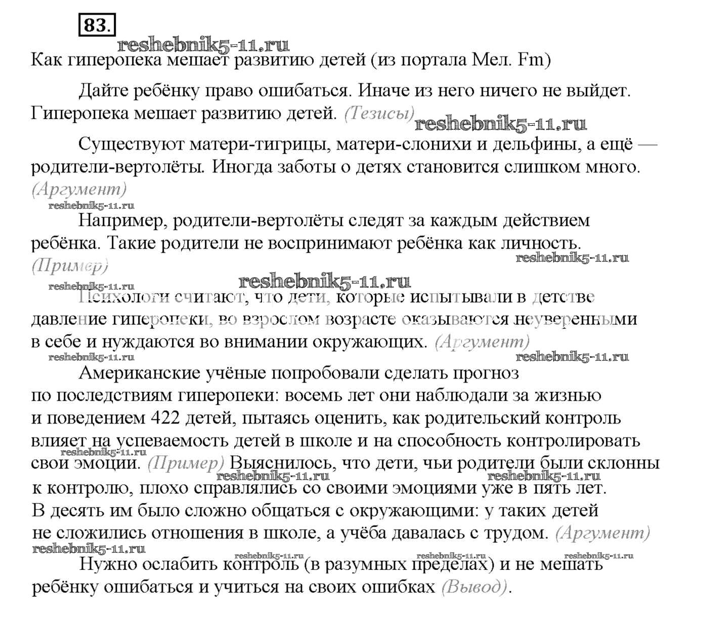 Готовая домашняя работа с ответами по Русскому языку за 8 класс Львов Рабочая тетрадь УМК Экзамен 2016 ФГОС - Упражнения 83