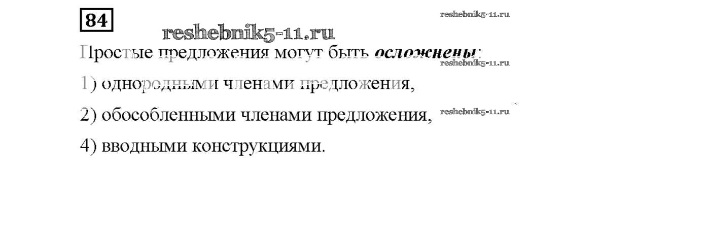 Готовая домашняя работа с ответами по Русскому языку за 8 класс Львов Рабочая тетрадь УМК Экзамен 2016 ФГОС - Упражнения 84