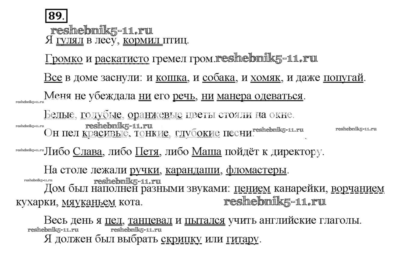 Готовая домашняя работа с ответами по Русскому языку за 8 класс Львов Рабочая тетрадь УМК Экзамен 2016 ФГОС - Упражнения 89