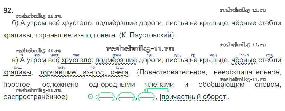 Готовая домашняя работа с ответами по Русскому языку за 8 класс Львов Рабочая тетрадь УМК Экзамен 2016 ФГОС - Упражнения 92
