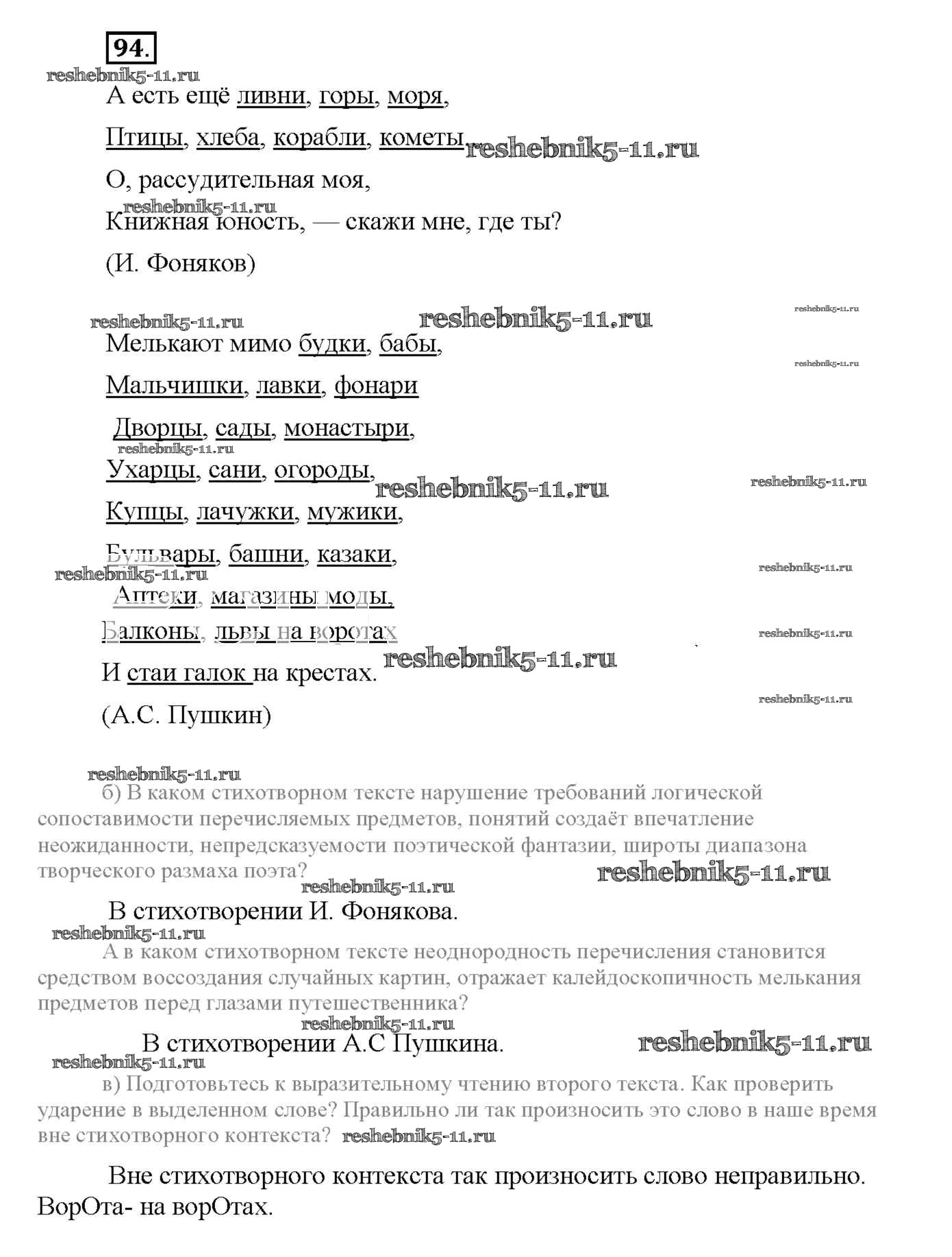 Готовая домашняя работа с ответами по Русскому языку за 8 класс Львов Рабочая тетрадь УМК Экзамен 2016 ФГОС - Упражнения 94