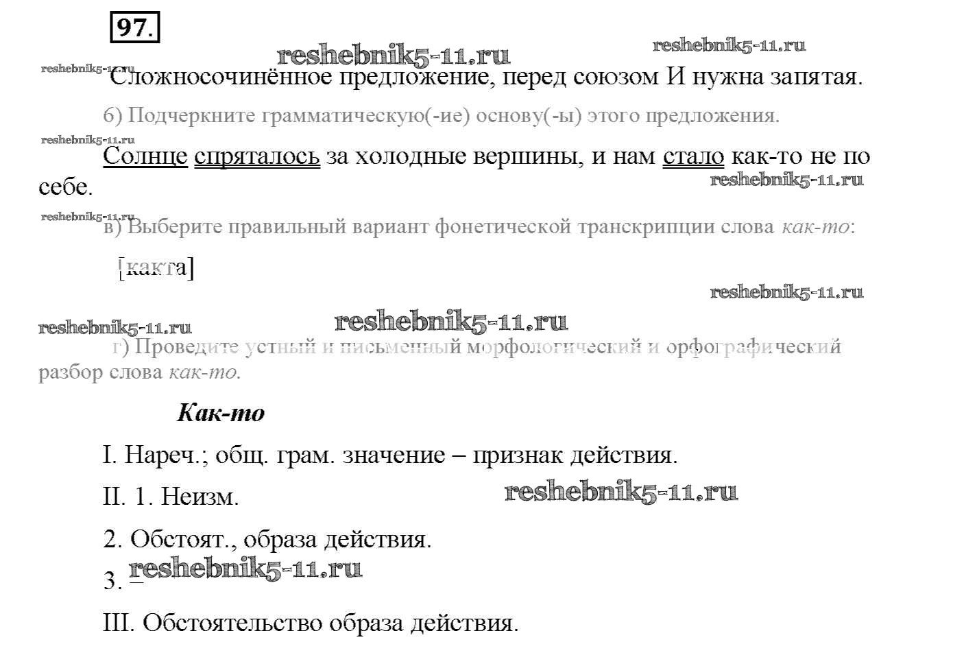 Готовая домашняя работа с ответами по Русскому языку за 8 класс Львов Рабочая тетрадь УМК Экзамен 2016 ФГОС - Упражнения 97