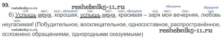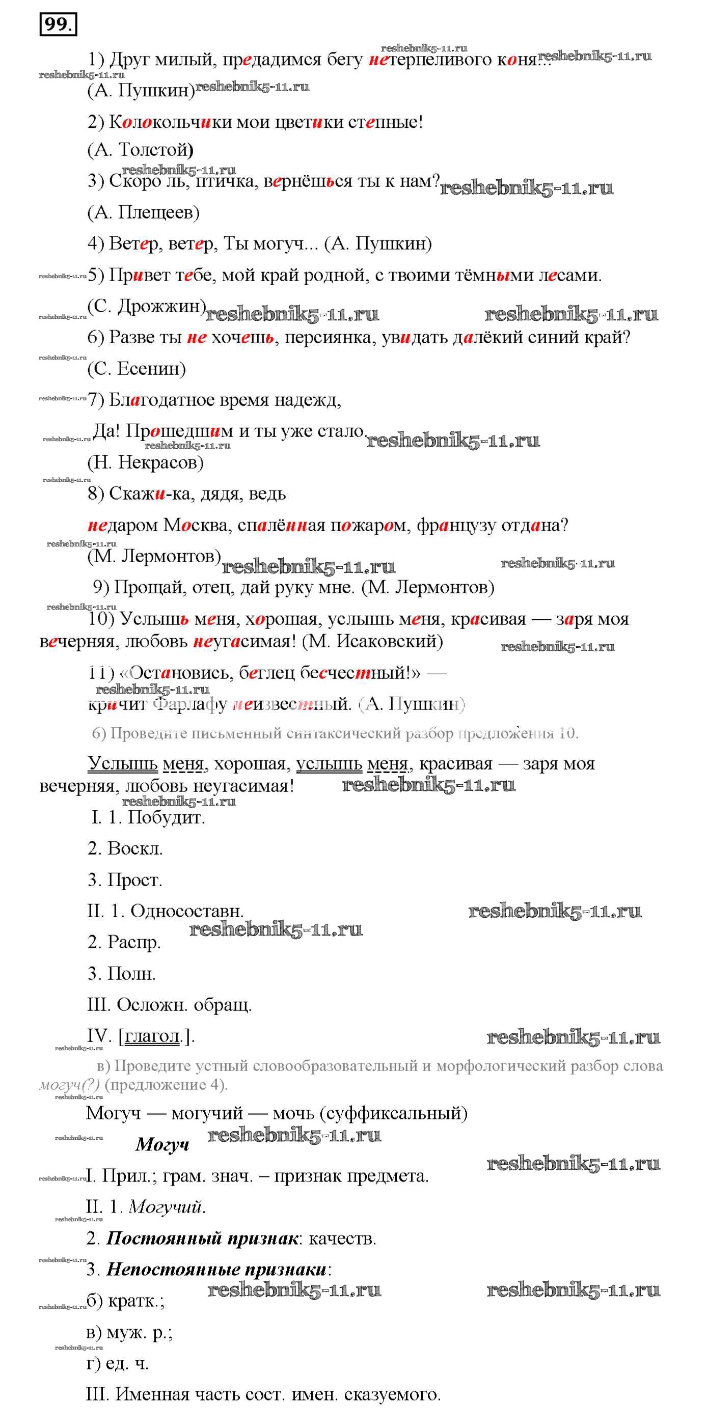 Готовая домашняя работа с ответами по Русскому языку за 8 класс Львов Рабочая тетрадь УМК Экзамен 2016 ФГОС - Упражнения 99
