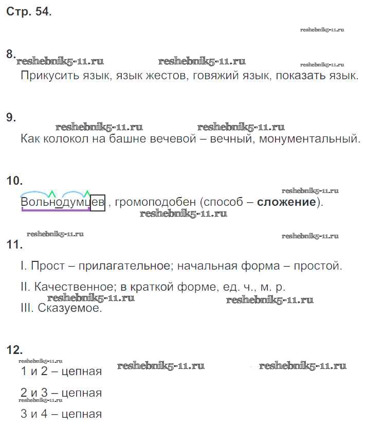 Готовая домашняя работа с ответами по Русскому языку за 8 класс Малюшкин Комплексный анализ текста (Рабочая тетрадь) Сфера 2018 ФГОС - Страницы 54